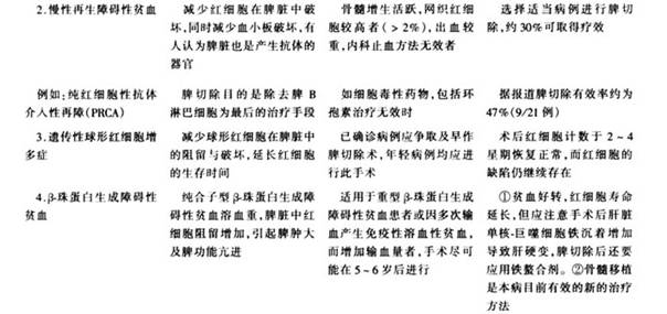 (1)骨髓骨硬化症(osteomyelosclerosis):该症的脾大是骨髓硬化后代偿造血的结果,脾切除使肝脏迅速肿大,病情恶化。在不得已情况下,才考虑脾切除术;如只有溶血症状,使病情变坏,或脾脏中红细胞滞留过多引起治疗无效的贫血。